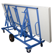 För längre transporter finns specialvagnar. De rymmer flera skivor åt gången och lasten kan vippas på högkant vid trånga passager. De kan också användas som arbetsbord. |