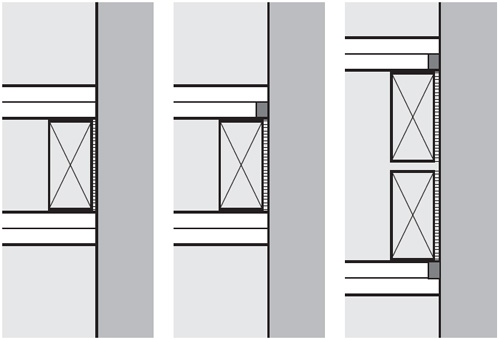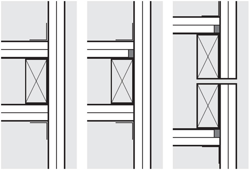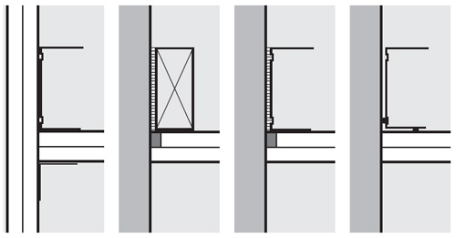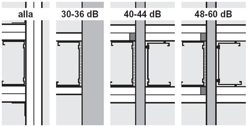 – med torr fogtätning: Gummilster både mot skivorna och den anslutande byggnadsdelen |